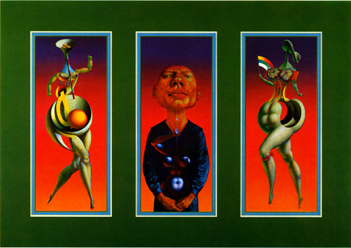 Adam Triptychon. 1974. Werknummer 34. Drei Serigrafien in Farben, montiert unter Passepartout, Format 70 x 100 cm. Gedruckt bei Hans-Peter Haas in Stuttgart. Nummeriert und handsigniert.