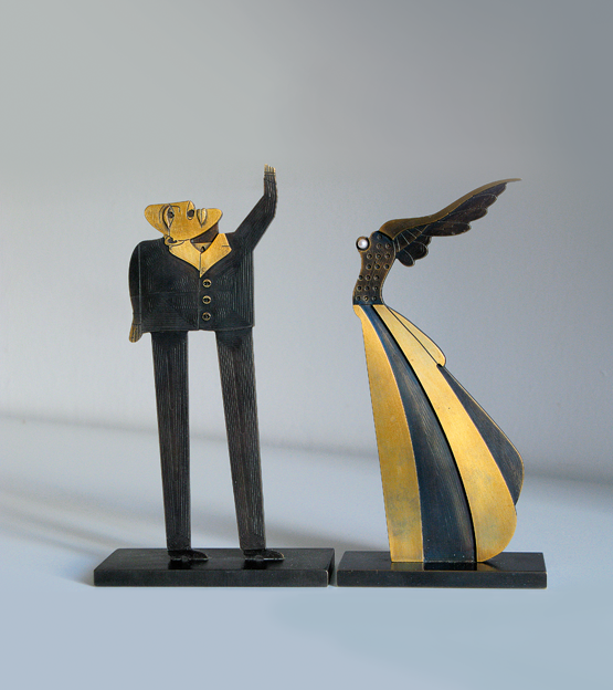 Zwei Skulpturen in Bronze, patiniert, teilweise poliert. Gegossen im Wachsausschmelzverfahren bei Fritz Albrecht in Altrandsberg. Jeweils montiert auf einer Bronzeplinthe.