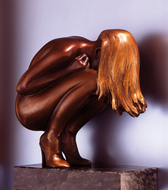 Skulptur in Bronze, patiniert, teilweise poliert, auf einem Sockel aus Diabas-Naturstein. Gegossen im Wachsausschmelzverfahren bei Fritz Albrecht in Altrandsberg. Höhe mit Sockel 23 cm, Gewicht ca. 5,4 kg. Auflage 480 Exemplare, nummeriert und signiert.