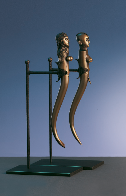 Werknummer 253. Skulpturen in Bronze, patiniert, teilweise poliert. Gegossen im Wachsausschmelzverfahren bei Fritz Albrecht in Altrandsberg. Höhe der Skulpturen jeweils 39 cm. Höhe der Figuren mit Plinthe und Bronzehalterung 47,5 cm. Gewicht je 4,5 kg. Auflage 99 Exemplare, nummeriert und signiert.