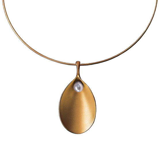 Ein Collier in 14 Karat Gelbgold (585/1000) mit einer Zuchtperle. Flexibler Halsreif mit Karabinerverschluss.