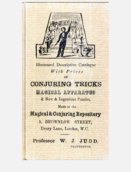 Catalogue of Conjuring Tricks W. J. Judd London o. J. (ca. 1880). 24 Seiten, mit Holzschnitten, Auflage 250 nummerierte Exemplare. Edelpappband, handgebunden von Theophil Zwang. Format 15,2 x 8,7 cm. Preis: 15,00 € Anfrage per eMail Nächstes Vorheriges Schließen