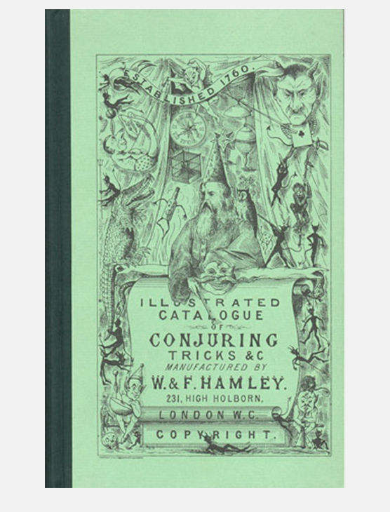 Illustrated Catalogue of Conjuring Tricks W. F. Hamley London o. J. (ca. 1882). 144 Seiten, mit zahlreichen Abbildungen in Holzstich. Auflage 250 nummerierte Exemplare. Halbleinen mit Rückentitel in Gold. Format 25 x 15,4 cm. Preis: 25,00 € Anfrage per eMail Nächstes Vorheriges Schließen